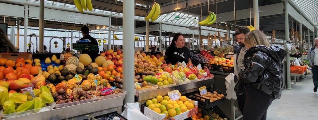This wonderful family has a wine stall where they provide excellent advice on Portuguese wines. No surprise, I’m getting to know them well. Wine is also sold by the glass in the market. It’s a great place to get a tasty lunch or snack, along with a glass of wine or fresh juices.